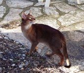 Tamouré chasse dans le jardin. On remarque sa langue sortie, comme s'il se léchait déjà les babines en pensant au festin qu'il va faire...